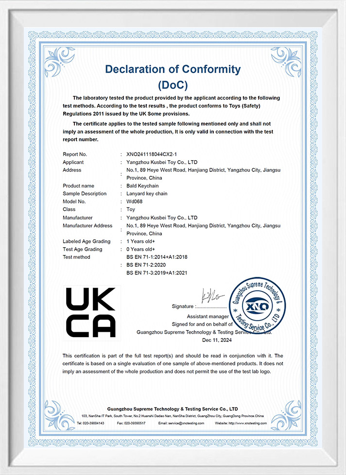 Os materiais e processos de produção de nossas soluções de brinquedos personalizadas atendem aos padrões de qualidade: UKCA EN71, CE EN71, CPC, garantindo que eles sejam absolutamente seguros.